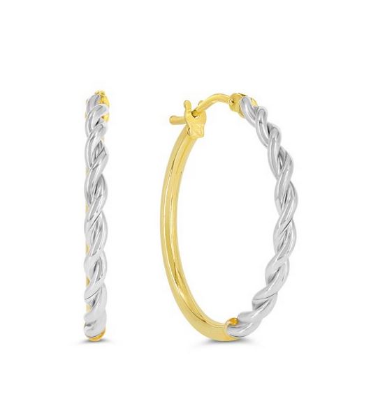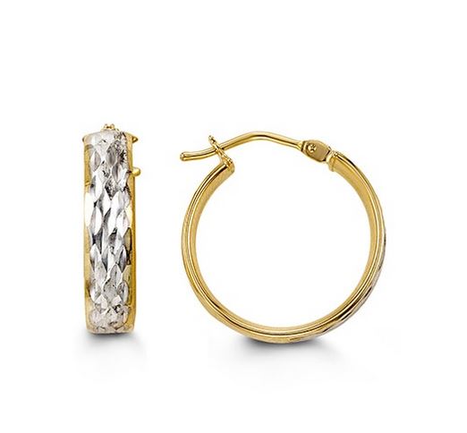 Boucles d'oreilles anneaux 10K jaune et blanc