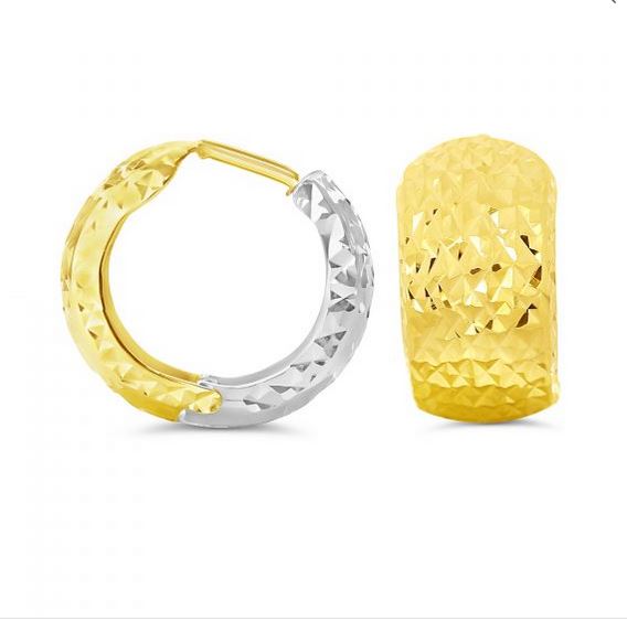 Boucles d'oreilles anneaux reversibles 10k jaune et blanc.